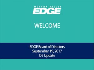 Each quarter EDGE presents to its Board of Directors a summary update on its activities over the past quarter. These are focused around business support, business development, the Mohawk Valley Regional Economic Development Council, and the redevelopment of Griffiss Business and Technology Park. Interested in what EDGE has accomplished over the past few months? Check out our Q3 update. To view online, click HERE or on the image.